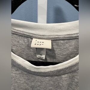 Women's Short Sleeve Layered Ribbed T-Shirt - A New Day - Heather gray tee with white trim. Casual and versatile style.