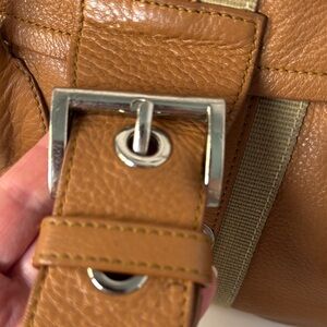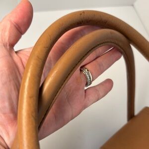 Stylish tan leather handbag perfect for any occasion. Features a sleek design with durable handles.