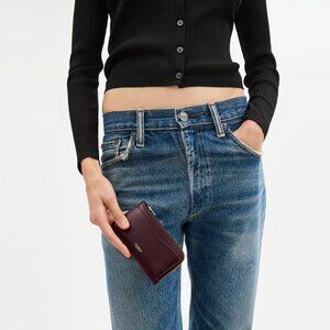 Refined calf leather Five credit card slots Open pocket Zip compartment 5 1/2 (L) x 3 (H) x 3/4 (W) Style No. CBF50
