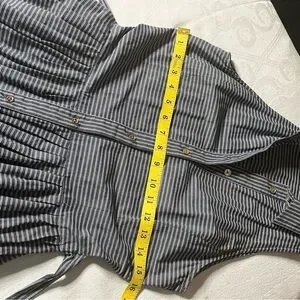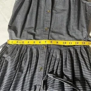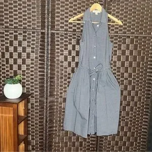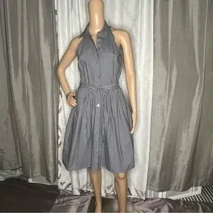 This chic sundress by Michael Kors features a sleeveless halter neckline and a tie front design, perfect for casual outings. Blue and white stipe midi dress with sewn on belt that can be tied in the front or the back.