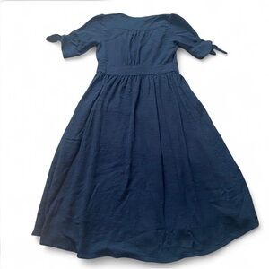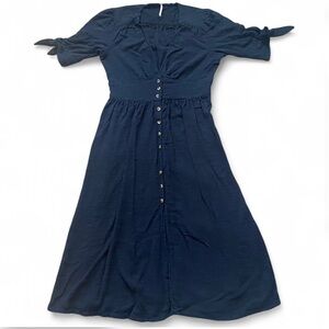 Romantic and effortlessly timeless, the Free People Love of My Life midi dress features a plunging V-neckline with flattering gathers radiating from an inverted-basque waist. Designed with a front button closure and subtle slit for movement, this retro-inspired silhouette is finished with elbow-length sleeves and delicate tie cuffs for a soft boho feel.