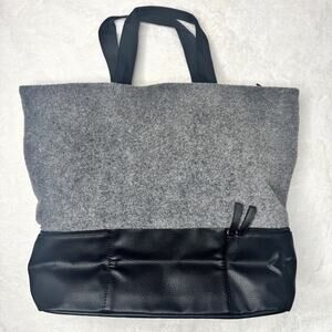 DSW Gray and Black Felt Zip Top Shoe Compartment Lightweight Travel Bag Tote