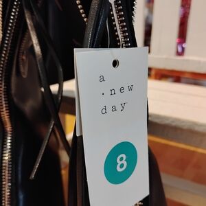 Mickey Point Toe Moto Ankle Boots from A New Day. Chic black heeled boots with stylish zipper and buckle accents. Perfect for adding elegance to any outfit. Stay high in style by wearing the Mickey Point Toe Moto Ankle Boots from A New Day. These black boots feature silver zippers and buckle for an eye-catching contrast. Designed with approximately three-inch stiletto heel, these moto boots have cushioned insoles for comfortable walking.