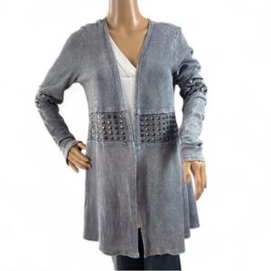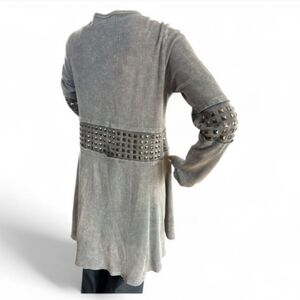 Elevate your style with this chic gray sweater featuring stylish studded details. Perfect for any occasion, this sweater offers both comfort and elegance.