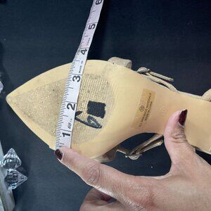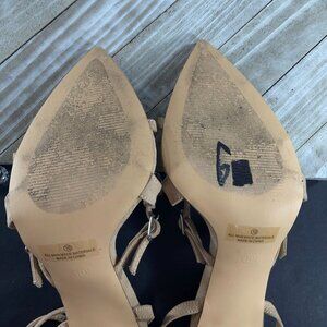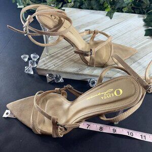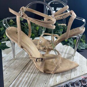 Olivia Ferguson Nude Suede Stiletto Clear High Heel Pointed Open Toe Shoe Ankle