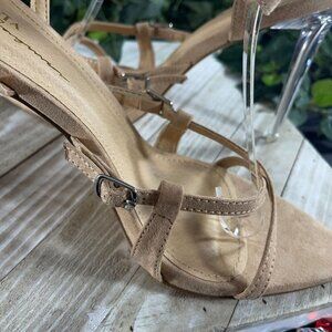 Olivia Ferguson Suede Stiletto Shoe Ankle Wrap Clear High Heel Open Toe Sandal