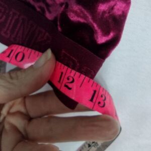 maroon, velveteen bralette with criss cross straps. elastic band 12.5"