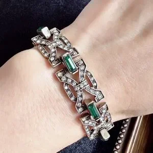 This exquisite bracelet features a stunning combination of silver and green elements, perfect for adding a touch of elegance to any outfit.