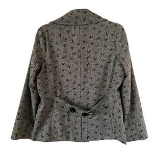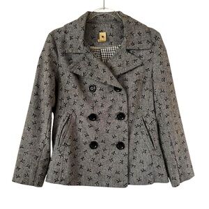 Needle & Thread Black Gray Bow Print Women's Double-Breasted Pea Coat Jacket L