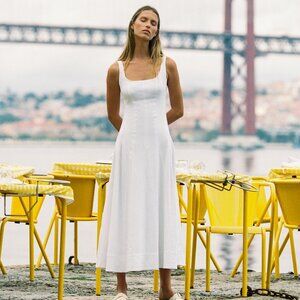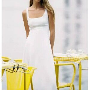 Zara Linen Strappy Midi Dress- Size Small- New- Never Worn- white linen dress