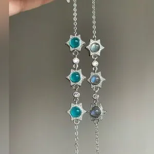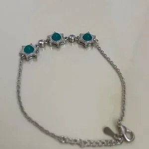 Elegant silver bracelet featuring star-shaped designs with striking teal accents. Perfect for adding a touch of sophistication to any outfit.