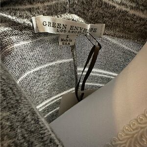 Green Envelope Gray and White Striped Cowl Neck Sweater size large NWT