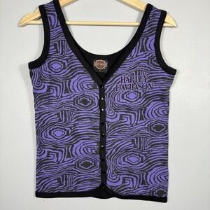 Harley Davidson Shirt Womens Large Purple Black Tank Top Seacoast Biker Graphic
