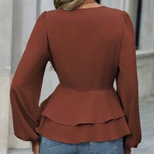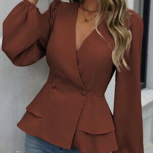 Rust Brown Elegant Minimalist women's Double-Breasted Cinched Waist Shirt