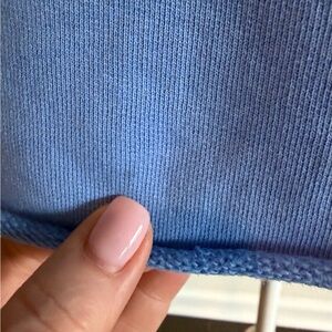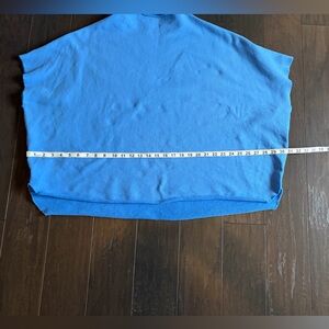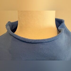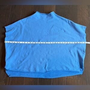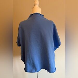Woman owned brand! Catherine elastic waist 24” triple fleece pant in size small. Relaxed fit, high rise and cropped wide leg. Audrey Capelet in one size fits all( oversized) with hand cut raw hem and edges. It has a rolled funnel neck and elbow length sleeves with signature capelet side slits. Full disclosure: capelet has a very tiny stain next to the hem(pictured). It is barely noticeable. I am selling the set because the pants are too big for me. Both pieces in wave color. 100% cotton, small batch garment-dye process designed to get softer with each wear. See pictures for measurements. I ship same day when possible.