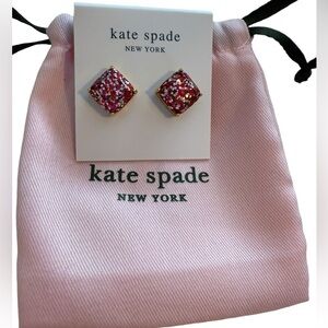 Kate Spade Earrings square pink red multi sparkle. Perfect for Holiday Christmas