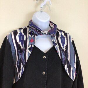 Color: Black with blue southwest print