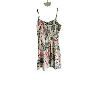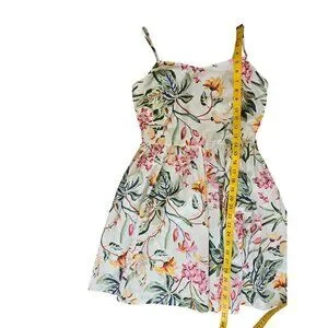 womens sundress, casual dress, floral mini dress, cotton summer dress, H&M clothing, size small, sleeveless dress, adjustable straps, lightweight dress, smocked back dress, mini casual dress, breathable fabric