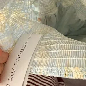 Nothing fits but smocked floral blue, green, and ivory dress with puff sleeves. Size M/L. New with tags perfect condition!