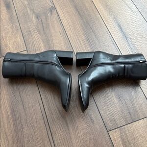 Step out in style with these elegant black leather ankle boots. Perfect for any occasion, these boots offer both comfort and sophistication.
