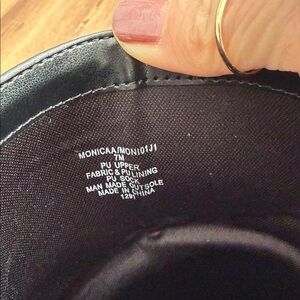 Inside zipper. 7” shaft height. Square toe, block heel.
