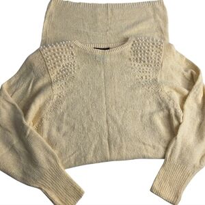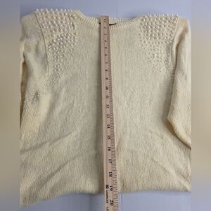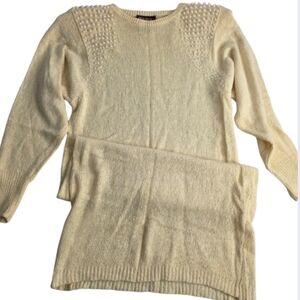 90's Raoul M Butter-Cream Sweater Dress Pearl Accents Angora Silk Vintage Ci1948