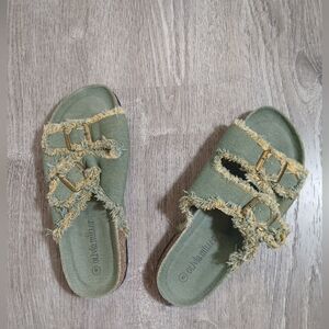 Olivia Miller Green/olive Frayed Buckle Sandals/slide On. Size 8.