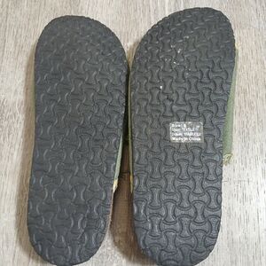 Chic olive sandals with frayed edges. Features stylish buckle accents. Ideal for casual wear.Dual strap with buckel featured and textured,distressed look. Casual sandle with a edgy look or relaxed as you want them to be. Birkenstock style.
