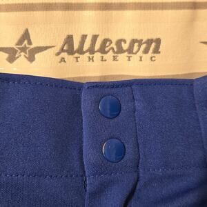 Get your young athlete ready for the game with these Alleson youth baseball pants. Featuring a classic blue color with white and red trim, these pants are perfect for any baseball player. Designed for comfort and durability, they will withstand the rigors of the sport.