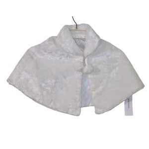 SK Studio Girls White Faux Fur Cape Shawl Bolero with Pom Poms Size M 8/10 NWT