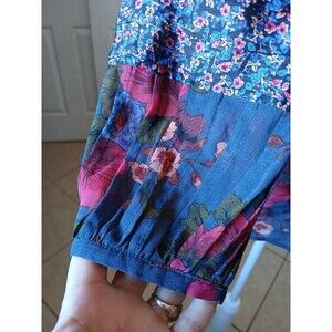 Daniel Rainn XS Boho Floral Tunic Blouse Tie Neck Long Sleeve