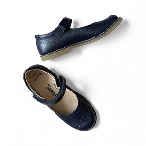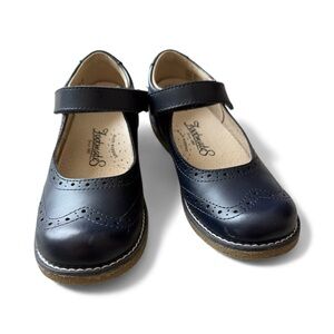 Elegant navy shoes with brogue detailing. Perfect for formal occasions. Secure strap for comfort.