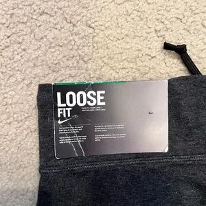 NWT size women’s medium with a stretch band on the inner waist for comfort. Tie waist accent and pink swoosh. Mid rise pants