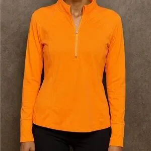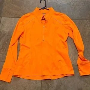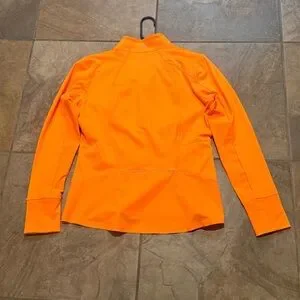 Athleta orange half zip. Features a zip pocket, reflective and thumb holes. Size Large. Gently worn once and hung to dry. Ideal for both casual and active wear.