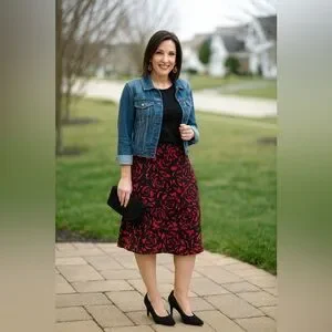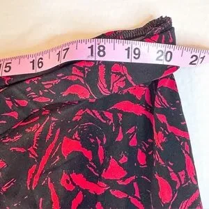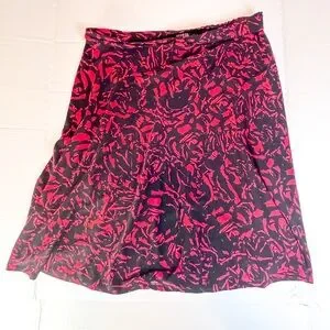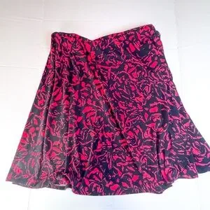george skirt, floral skirt, rose print skirt, red black skirt, a line skirt, womens xl skirt, size 16 18 skirt, stretchy skirt, knee length skirt, date night skirt, office skirt, casual chic skirt, pull on skirt