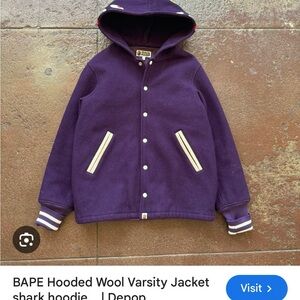 SHARK VARSITY WOOL JACKET BAPE. Size small. Could not find a gray one listed online but the purple goes for $550+. This jacket is in perfect condition!
