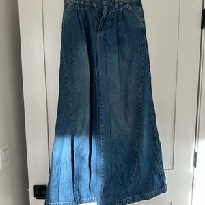Stylish wide-leg jeans with a relaxed fit. Rich indigo hue for a modern look. I only wore them a few times so they are in great condition. The last pic is to show wear on the bottom hem but that might be how it was always styled :)