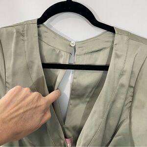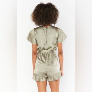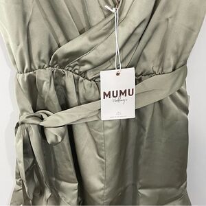 NWT Show Me Your Mumu - Say I Do Romper Moss Green Size MEDIUM Satin Faux Wrap