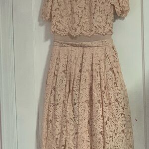 Maniju Blush Lace Midi Dress Size S Sheer Net Panel Formal Gown Back Zipper