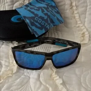 LIKE NEW!!! Costa Rinconcito, Tiger Shark frame with blue mirror lenses. Medium size, Polarized, spring hinges, lightweight frame perfect for everyday wear!