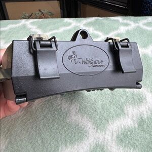 Camouflage trail camera with LED lights and display screen. Wildgame Innovations brand, uses 4 C batteries (not included), does not have USB power source. Only used for a week, excellent working condition. Includes the memory card.