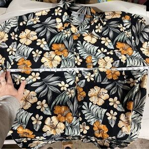 Op Black Hawaiian Floral Button-Up Shirt Cotton
