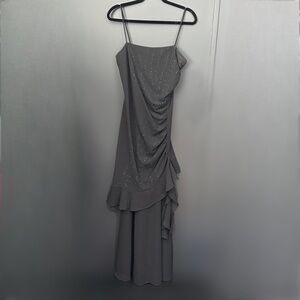Vintage Y2k 90s Beaded Whimsigoth fairy goth maxi dress tiered ruffle evening gown formal dress spaghetti straps, square neckline and zipper closure.