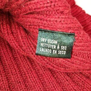 This Lauren Ralph Lauren sweater is a classic and preppy piece designed for women in size L. Made of a luxurious blend of silk, linen, and cotton in a rich red color, it features a cable-knit pattern with a V-neckline and long sleeves. The pullover style sweater is accented with the brand's logo, offering a designer touch to the garment. Ideal for various occasions including travel, parties, casual outings, and business settings during the fall and winter seasons.