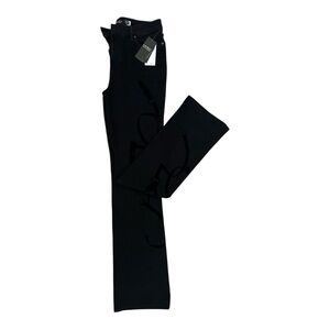 Classic black boot-leg jeans from Ralph Lauren’s Lauren Collection. Designed with a subtle glossy velvet bit-print motif along the legs for a sophisticated equestrian touch. Crafted in premium super-stretch denim for shape memory, comfort, and a flawless silhouette.