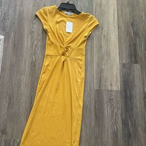 NWT Twist Front Ribbed Midi Dress by Velvet Torch Sz Small Mustard color