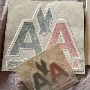 The patches are 4 1/4” x 5” and 2 1/2” x 2 1/2”