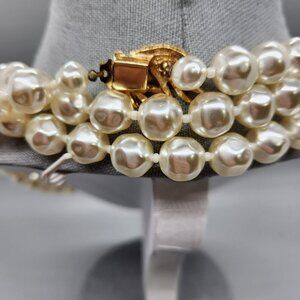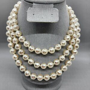 Stunning Vintage Estate Large Faux Pearl approx 1cm Necklace Ornate Clasp 58"