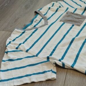 Teal and gray V-neck tee with a stylish design. The stripes are definitely teal, coming through as more of a blue but it is teal :)
