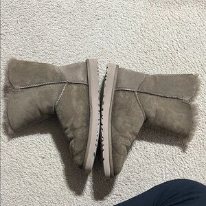 Stay warm and stylish with these cozy brown shearling boots. Perfect for chilly days, these boots offer comfort and elegance.